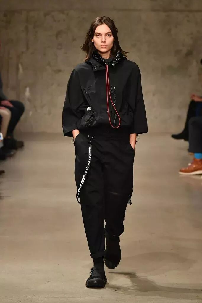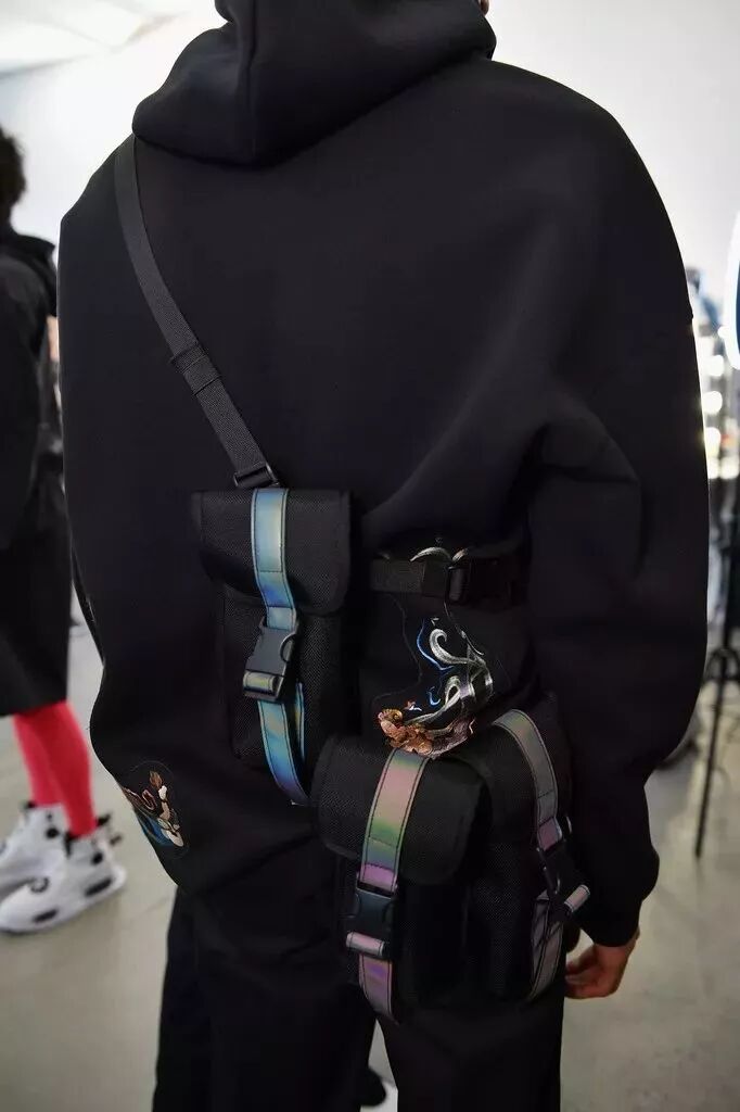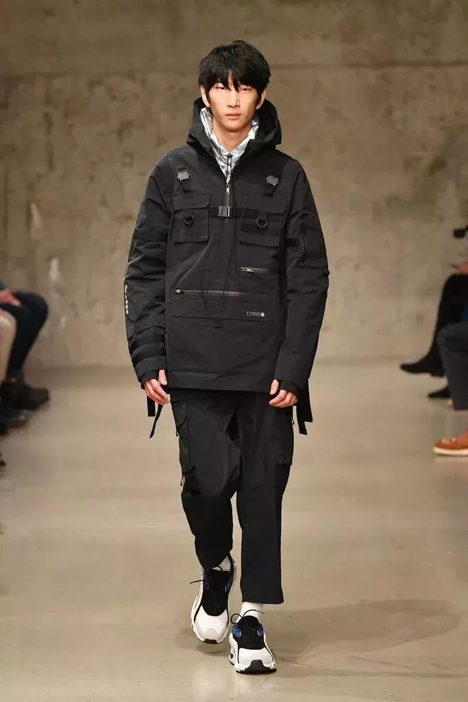 走秀款中,我們也看到了這兩年復古熱潮中許多運動品牌都會加入的「串標」設計。「型之悟」部分中也出現了一批黑色主打的單品,在「功能性」和「視覺效果」上加入了一些嘗試,百搭的挎包也出現其中。